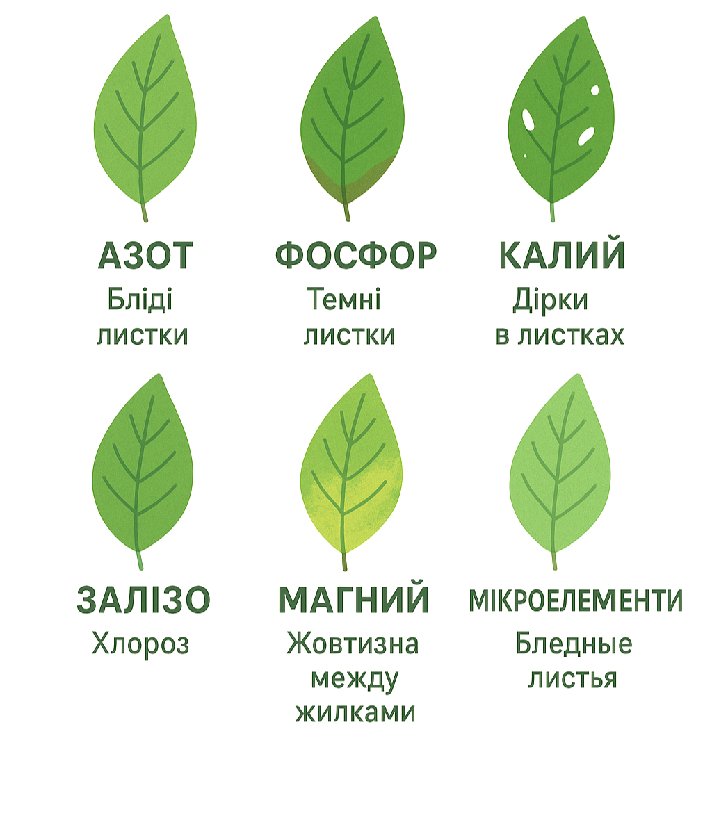 Симптоми дефiциту добрив: